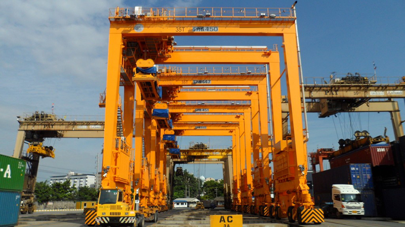 1、 輪胎式集裝箱門式起重機(jī)是集裝箱貨場(chǎng)進(jìn)行堆碼作業(yè)的專用機(jī)械,廣泛應(yīng)用于港口碼頭及集裝箱貨場(chǎng)。