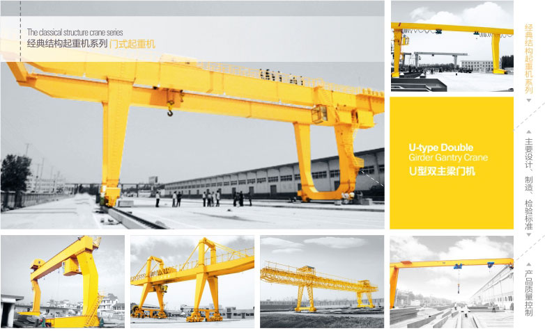 1、 U型雙主梁吊鉤門式起重機(jī)適用于露天貨場(chǎng)、鐵路沿線作業(yè)進(jìn)行一般的裝卸及起重搬運(yùn)工作。