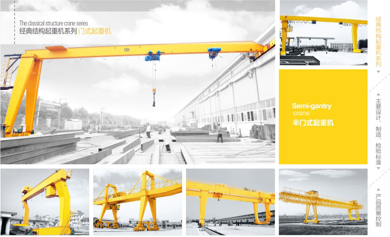1、BMH型電動葫蘆半門式起重機(jī)與CD1、MD1等型號的電動葫蘆配套使用,是一種有軌運(yùn)行的中小型起重機(jī)。