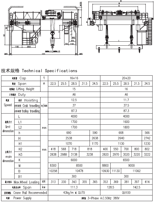 2、 本起重機起重量包含電磁鐵自重,起重機總重不包含電磁鐵自重。