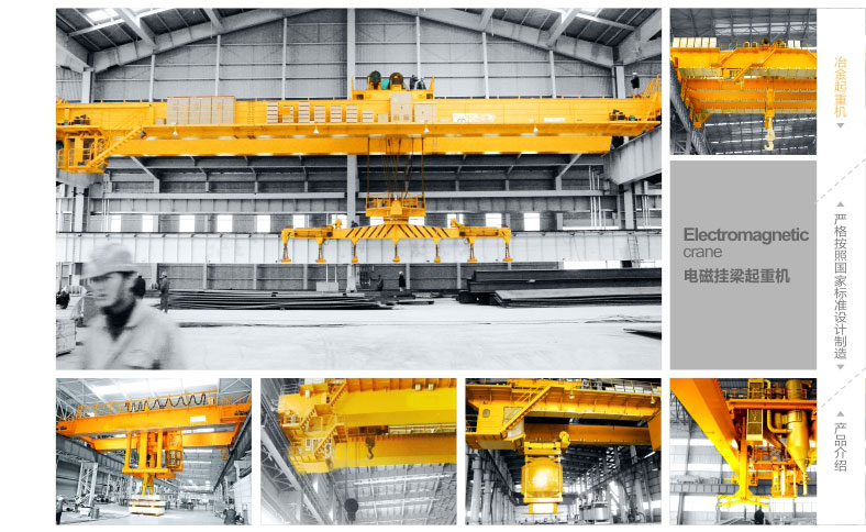1、 本起重機帶有可拆卸的電磁盤,特別適用于搬運具有導磁性的黑色金屬制品與材料,如鋼錠、型鋼、生鐵塊等。主要用于鋼鐵企業(yè)軋線、成品庫,船廠鋼料堆場、下料車間等。