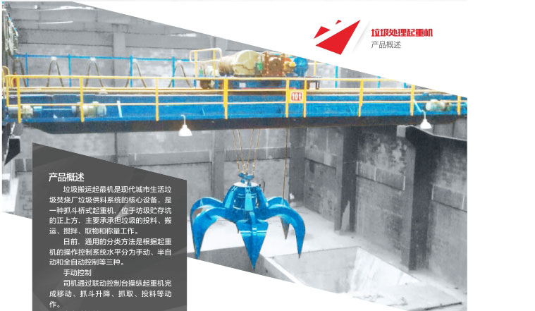 1、 垃圾抓斗起重機(jī)是現(xiàn)代城市各種垃圾焚燒發(fā)電廠垃圾供料系統(tǒng)的核心設(shè)備,位于垃圾儲(chǔ)存坑的上方,主要承擔(dān)對(duì)垃圾的投料、搬運(yùn)、攪拌、取物和稱(chēng)重等作業(yè)。