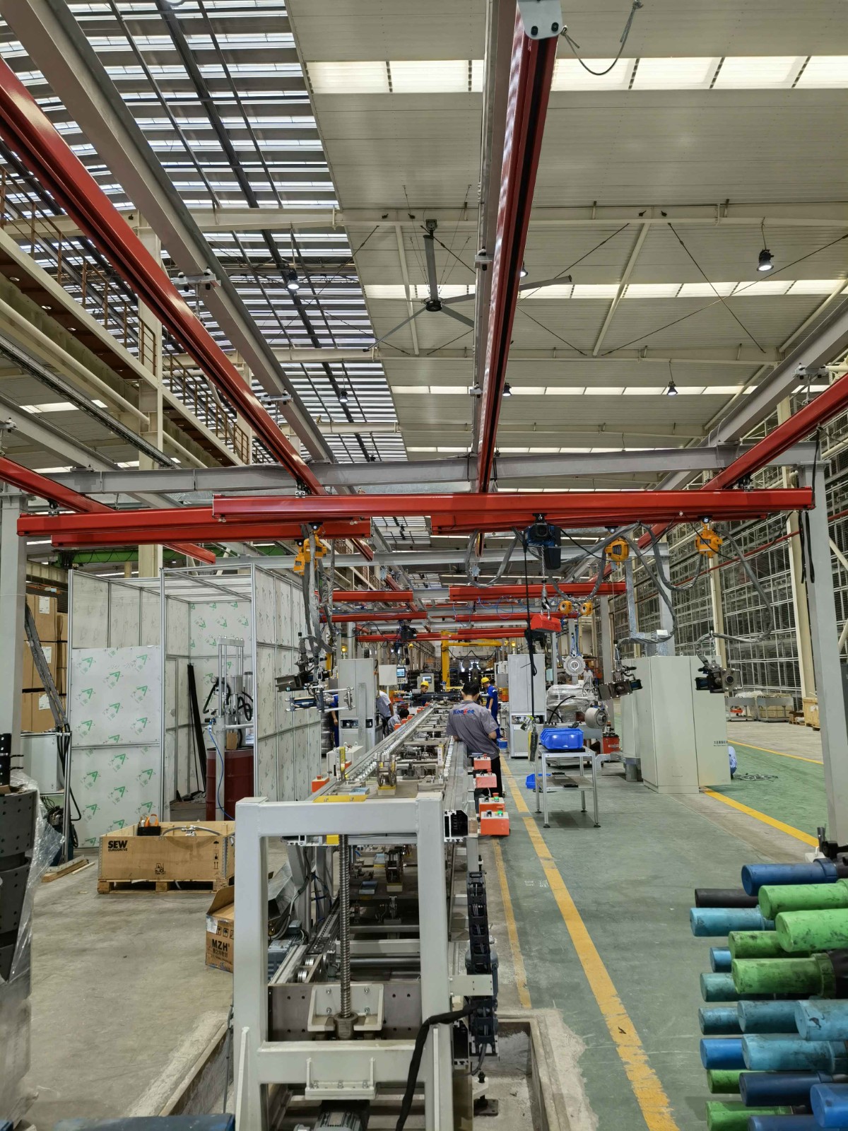 KBK起重機(jī)標(biāo)準(zhǔn)組件。由懸掛裝置、軌道、道岔、行走小車、電動葫蘆、移動供電裝置(滑線)以及控制裝置等組件組合而成,起升裝置主要采用環(huán)鏈電動葫蘆,也可吊掛一些機(jī)械手或焊槍之類,作為工具滑軌使用,起重量一般2000kg。只需簡單地懸掛在廠房頂板或梁架上便可實現(xiàn)物料的空中直接輸送,因此被廣泛地應(yīng)用于各行各業(yè)的物料輸送環(huán)節(jié)或系統(tǒng)。